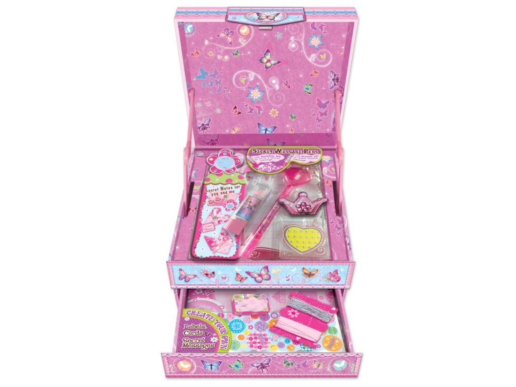 Krásná dopisní sada pro malé spisovatele, kteří si mohou zapisovat nápady nebo kreslit a zdobit ozdobami své dopisní výtvory. Sada je v krabičce s krásným designem, obsahuje i ozdobné pero na baterie 3×LR41 (jsou součástí balení). Vhodné pro děti od 6ti let.