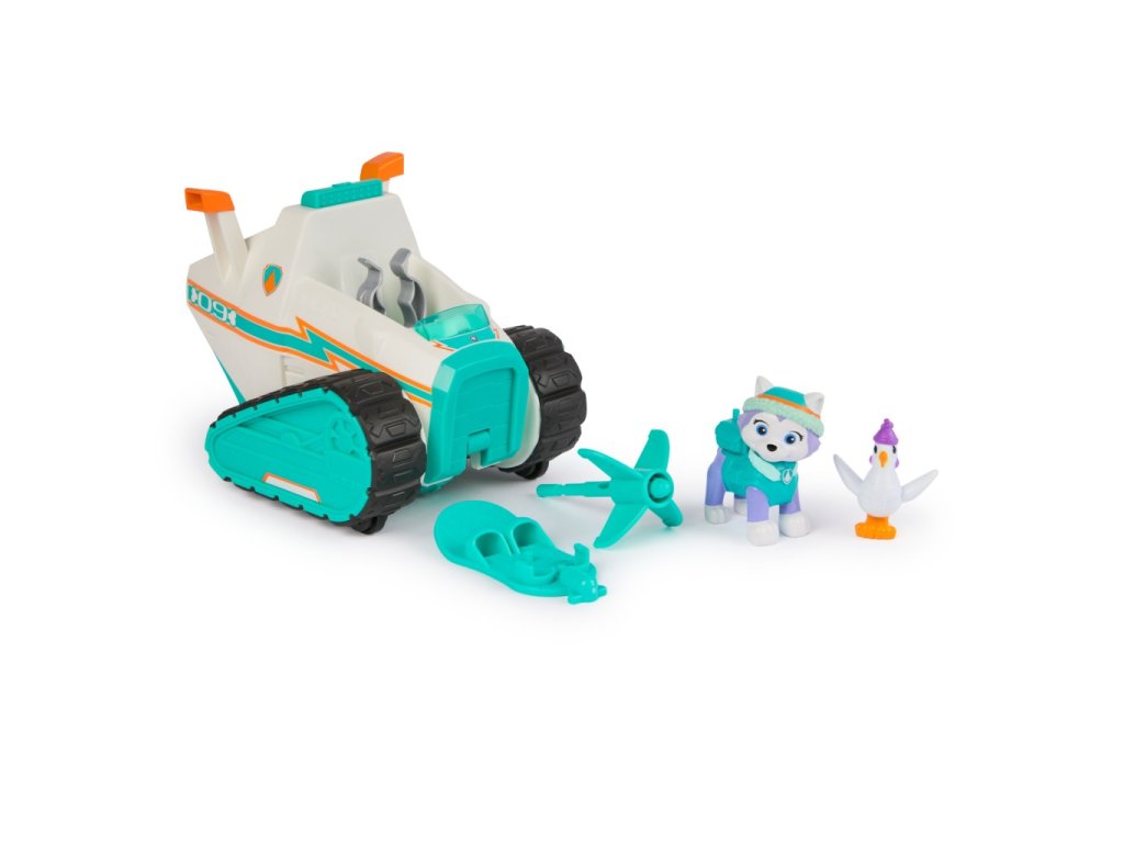 Zažijte napínavé záchranné mise s Everest a Chickalettou z Tlapkové patroly ! Everestin sněžný skútr je vybaven otočným hákovým odpalovačem a snowboardovým odpalovačem, které zajišťují nepřetržitou záchrannou akci. Připravte se na vzrušující záchranu vložením háku do odpalovacího zařízení a stisknutím tlačítka jej vypusťte do akce. Připevněte Everest nebo Chickalettu na snowboard, zmáčkněte světelnou lištu, spusťte snowboard a stylově zachraňte situaci! Toto dynamické duo poskytuje nekonečné dobrodružství pro mladé nadšence z Tlapkové patroly. Hračky Tlapková patrola pro chlapce a dívky, kteří jsou fanoušky seriálu, podporují nápaditost při hraní a vylepšují jemné motorické dovednosti. Hrdinové z Tlapkové patroly a jejich autíčka vám umožní znovu prožít vaše oblíbené okamžiky z různých dobrodružství Tlapkové patroly, jako jsou Mocné tlapky a Tlapková patrola ve filmu, nebo se vydat na zcela nová dobrodružství (prodávají se zvlášť). Užijte si dlouhé hodiny zábavy a vydejte se na dobrodružství inspirované seriálem Tlapková patrola s kompletními sadami týmu záchranářů, který obsahuje autíčka Tlapkové patroly, akční figurky a zcela nové velitelství v podobě Tlapkové věže.