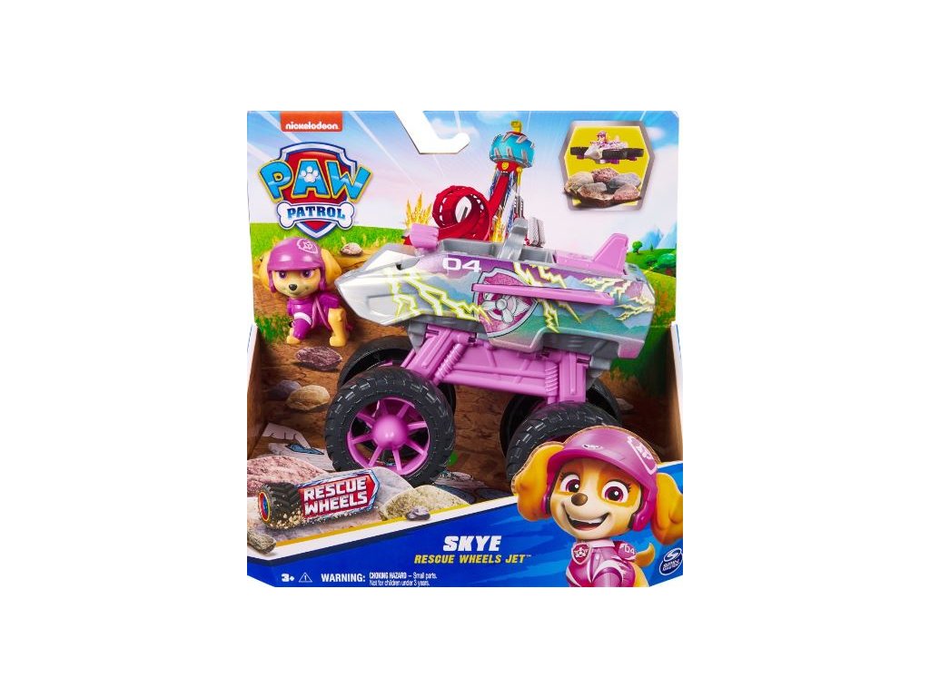 Vydejte se na vzrušující záchranné mise se Skye a její záchranářskou stíhačkou! Monster truck Skye má veliká kola a autentický design a provedení Tlapkové patroly, takže vypadá přesně jako v seriálu! Stiskněte ploutev vzadu na jejím monster trucku, abyste vysunuli kola do tryskového režimu, a poté odleťte zachránit situaci! Hračky s tematikou Tlapkové patroly pro chlapce a dívky podporují nápaditou hru a zlepšují jemnou motoriku, proto jsou skvělými dárky pro všechny fanoušky pořadu. Hrdinové z Tlapkové patroly a jejich autíčka vám umožní znovu prožít vaše oblíbené okamžiky z různých dobrodružství Tlapkové patroly, jako jsou Mocná štěňata a Tlapková patrola ve filmu, nebo se vydat na zcela nová dobrodružství (prodávají se zvlášť). Užijte si dlouhé hodiny zábavy a vydejte se na dobrodružství inspirované seriálem Tlapková patrola s celým týmem záchranářů, který obsahuje autíčka Tlapkové patroly, akční figurky a zcela nové velitelství v podobě Tlapkové věže.