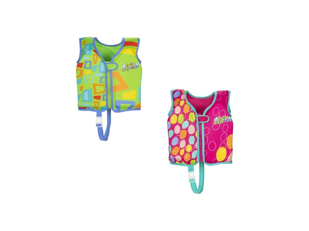 Plovací vesta pro děti od 3 do 6 let o velikosti 51 cm. 50+UPF, veselý design, nastavitelná přezka a popruh, odolný zip s automatickým zámkem.