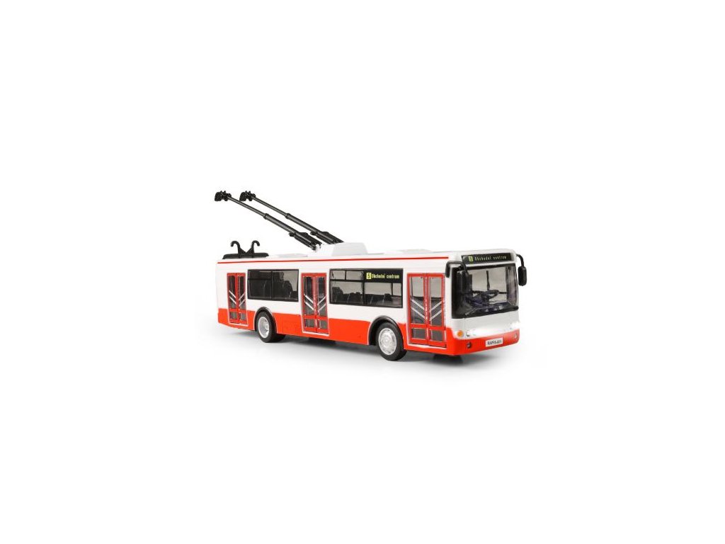 Rychle nastoupit, zavřít dveře a jedeme! Originální trolejbus, který oznamuje stanice v českém jazyce a jezdí na zpětný chod. Dveře lze manuálně otevřít a zavírají se pomocí tlačítka umístěného na střeše vozu. Při každém otevření se ozve hlášení, při zavření navíc blikají přední světla trolejbusu. Trolejbus je vyroben v délce 28 cm a měřítku 1:43. Vyžaduje použití 3 ks baterií typu LR44/AG13, které jsou součástí balení. Potisk názvu stanice a číslo se může lišit od vyobrazení. Tahle unikátní hračka nesmí chybět fandům ekologické dopravy!