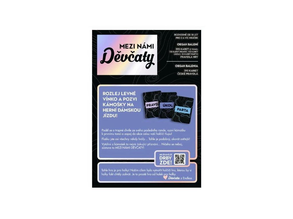 Poděl se o trapné chvíle ze svého posledního rande, vyzvi kámošku k prvnímu tanci a zapoj do akce celou vaši holčičí tlupu! Flašku jste asi všechny někdy hrály… Tohle je podobný, akorát ostřejší! Vytáhni z kámošek ta nejvíc šokující přiznání… Ničeho se neboj, zůstane to MEZI NÁMI DĚVČATY!
