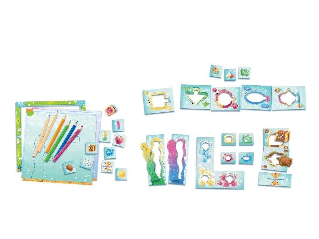 Ve hře Moje první akvárko budete kreslit do svého akvária ryby pomocí kartonových šablon a plnit různé úkoly, jako krmit ryby nebo kreslit skrýše. No konci hry vám vznikne obrázek, který můžete oživit barevnými pastelkami. Hra přirozeně rozvíjí zrakové vnímání a jemnou motoriku.