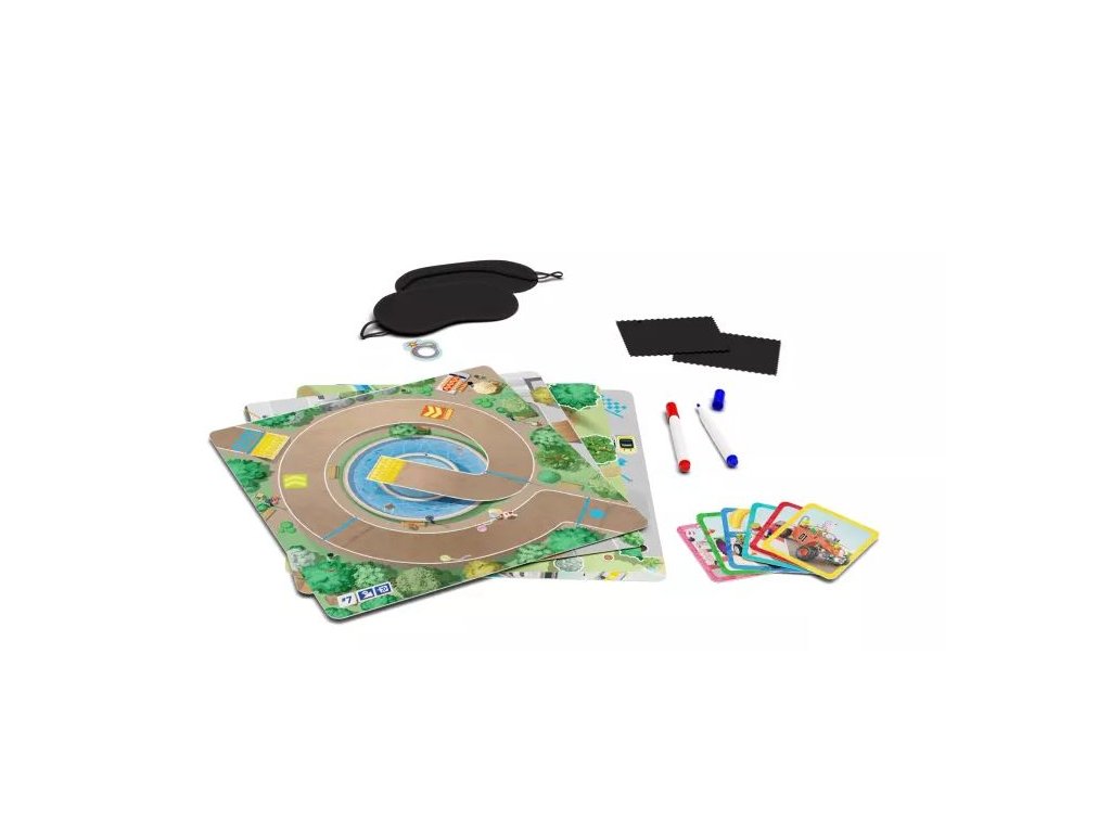 Řidič si zakryje oči a musí co nejrychleji nakreslit svou trasu, aniž by vyletěl z trati. Kopilot mu slovně napovídá a pohybuje jeho palcem jako joystickem. Ve hře zvítězí tým, který jako první vyhraje na dvou tratích.