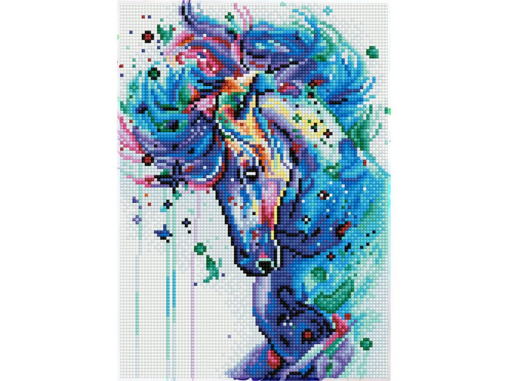 Tato sada obsahuje: Plátno s natištěným obrázkem, 10.614 ks Diamond Dotz kamínků zabalených a roztříděných podle odstínu (kterých je spoustu navíc),