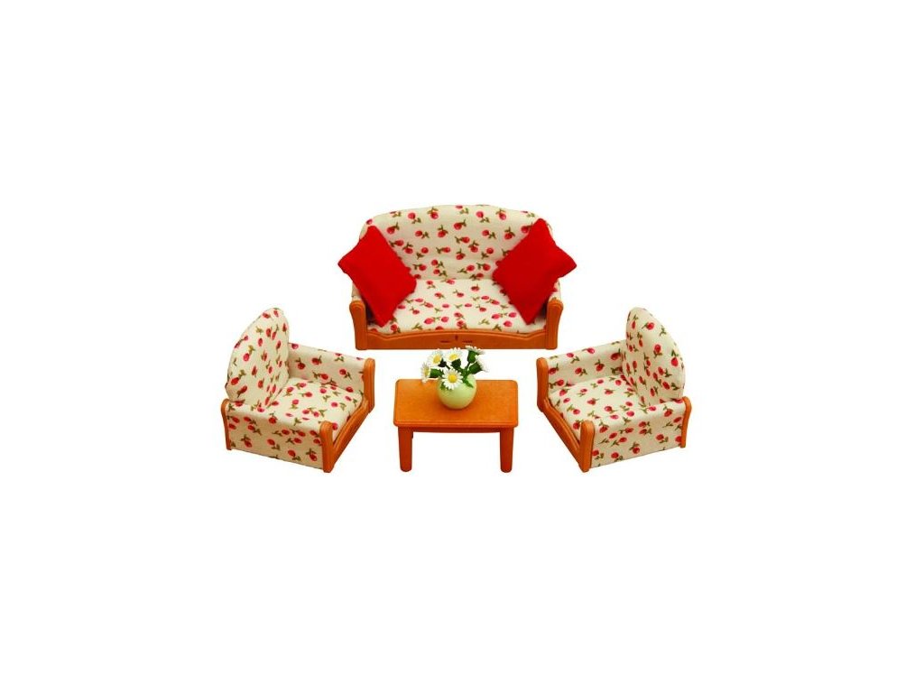 Pohovka, 2 křesla, stoleček a vázička s květinou v žádném obýváku nesmí chybět! Sada neobsahuje postavičky. Věk: 3+