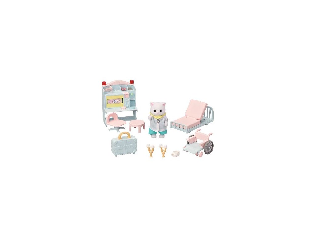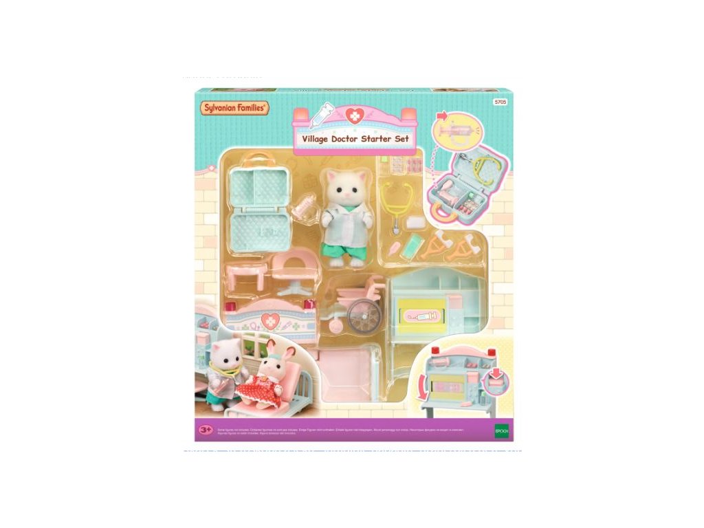 Startovací sada vesnický lékař obsahuje vše, co potřebujete ke hře na doktora, včetně figurky v bílém plášti, kontrolního přístroje a dalších lékařských nástrojů. Představujeme perskou kočku, doktorku Dawn. Pomozte udržovat zdraví pomocí přiložených stříkaček, stetoskopu, postele, invalidního vozíku, léků a dalšího příslušenství. Doktorský sáček lze použít k uložení stříkaček, stetoskopu a léků. Stimuluje nápadité hraní rolí u dětí. Vhodné pro děti od tří let.