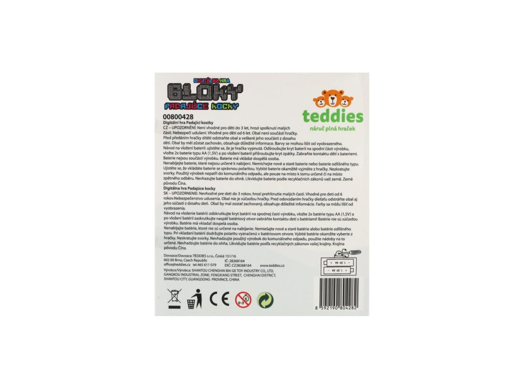Digitální hra Padající kostky konzole hlavolam plast 15x9cm na baterie se zvukem na kartě 6ks v boxu