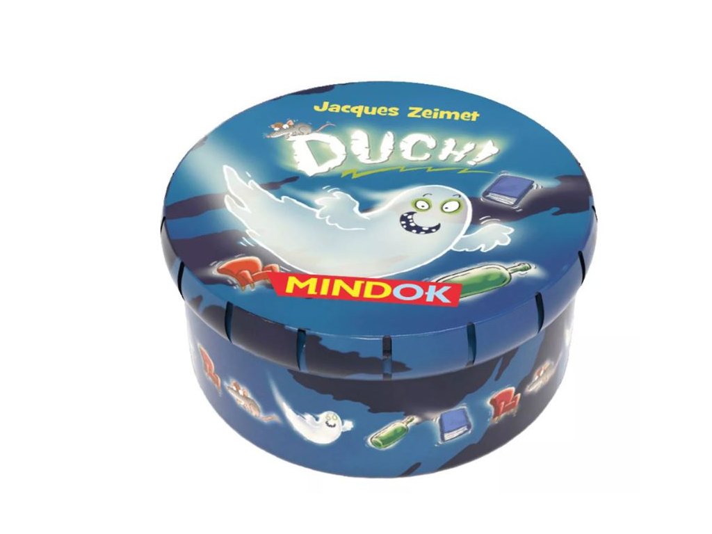 Duch! Mini je bleskurychlá postřehová hra pro 2 – 8 hráčů. Myš! Kniha! Křeslo! Láhev! Duch! Ve hře je 5 různých dřevěných předmětů – bílý duch, zelená láhev, modrá kniha, červené křeslo a šedá myš. Na kartách jsou obrázky těchto předmětů, ovšem ne vždy ve správných barvách.