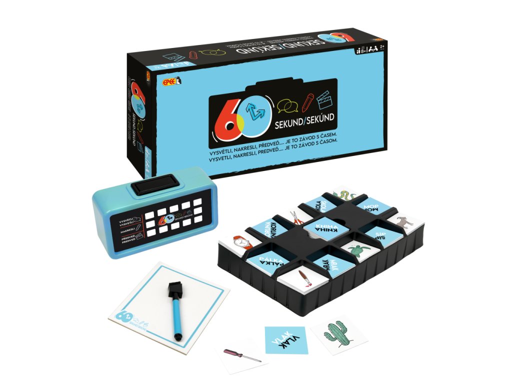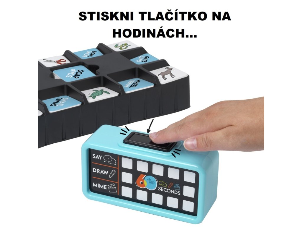 Zábavná hra pro celou rodinu a kamarády. Toto je opravdový souboj s časem. Vysvětli během jedné minuty co nejvíc slov nebo obrázků. Ostatní budou hádat. Vyhrává ten, kdo získá nejvíce kartiček. Vysvětli, předveď a nakresli. Zapoj fantazii a veškeré své dovednosti. Elektronické hodiny budou odměřovat čas a ukáží, který obrázek nebo text budeš popisovat. Vybírej ze 4 různých módů: Vysvětluj, Kresli, Předveď nebo Náhodná volba. Můžeš si zahrát 3 různé hry. Hra obsahuje elektronické hodiny, 120 oboustranných kartiček, zásobník na kartičky, stírací tabulku a smývatelný fix. Hra je určena pro 3 a více hráčů. Věk 8 +. Hra vyžaduje 3 x AAA baterie (nejsou součástí balení).