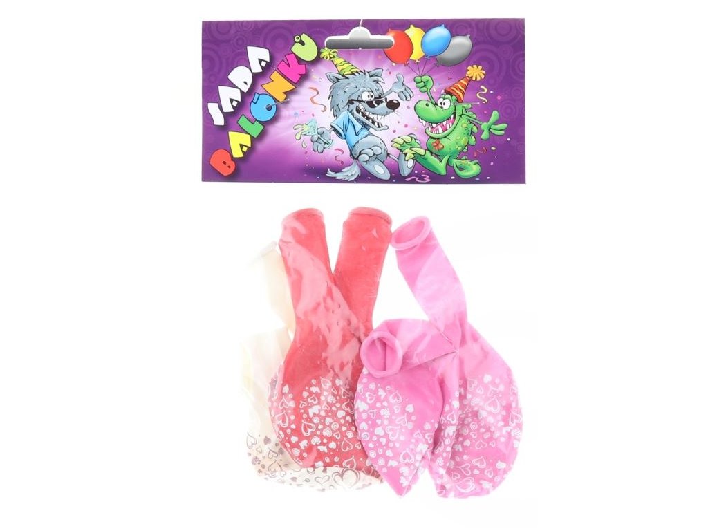 Balonky kulatý s potiskem srdce, sada 6 ks - bílá, růžová, červe