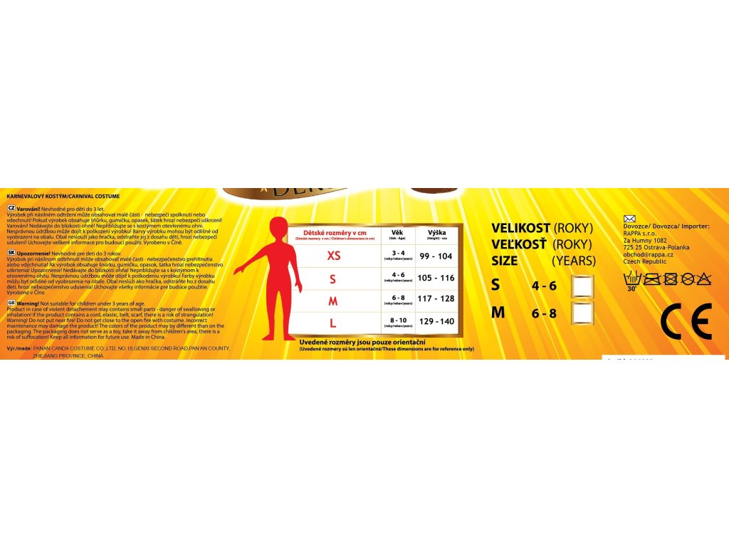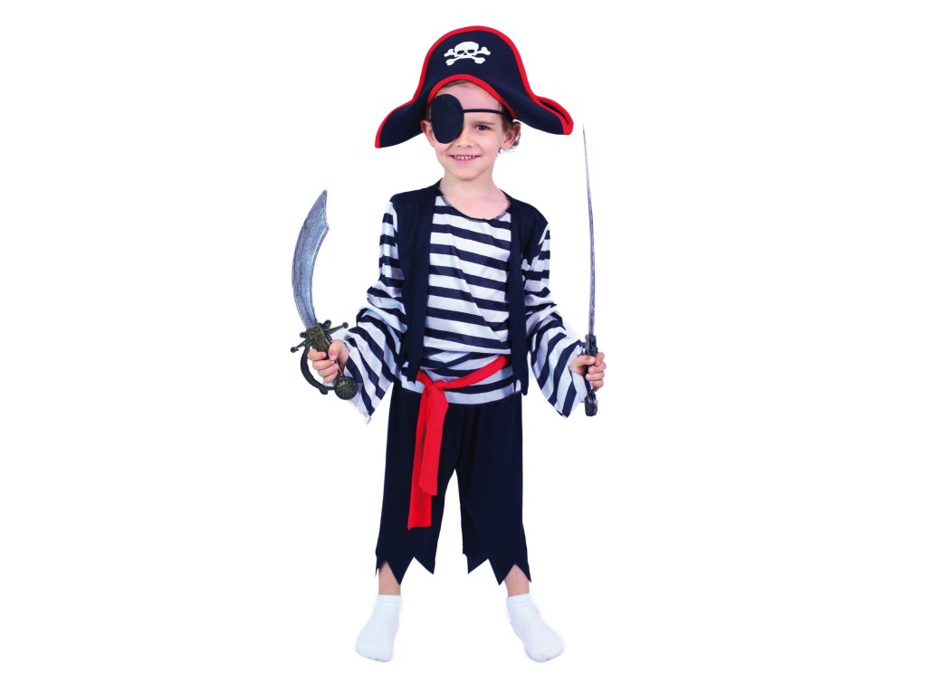 Karnevalový kostým, který tě promění v malého piráta! Kostým ve velikosti M je určen pro chlapce ve věkovém rozmezí 6-8 let (116-128 cm). Balení obsahuje horní díl, kalhoty, pásek, klapku na oko a stylovou pirátskou čepici. Nejen letos je potřeba myslet EKO-nomicky i EKO-logicky! EKO-balení je vhodné zejména pro e-shopy kde zákazník nakupuje dle fotografie a není třeba velkého balení s věšákem. EKO-logicky – na balení bylo použito méně plastu a dalších materiálů. Jedná se o malý transparentní obal s fotografií. EKO-nomicky –EKO-obal zabere jen polovinu místa – šetřete skladová místa s námi!