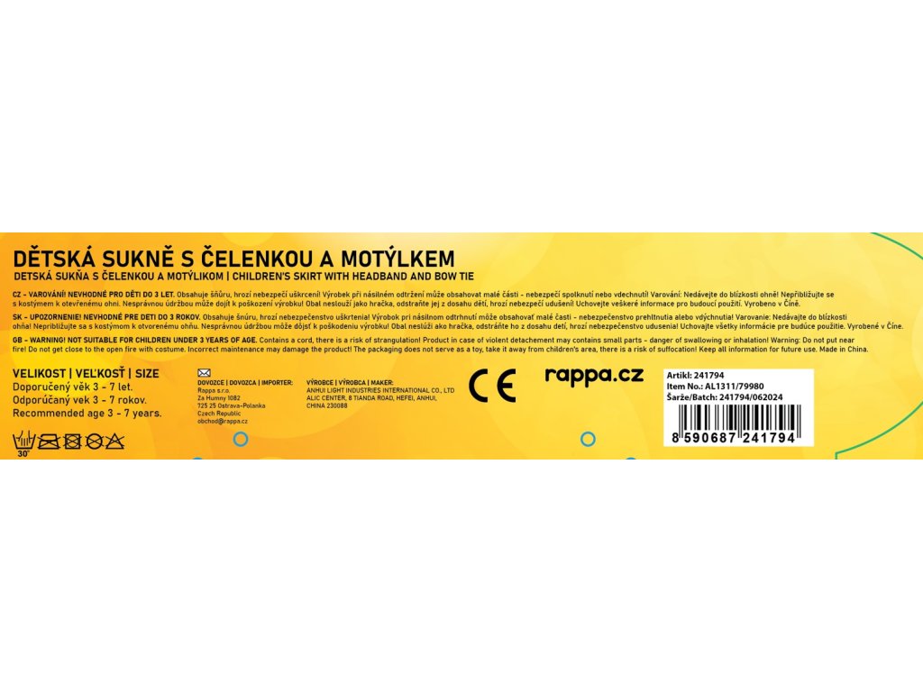 Roztomilý karnevalový kostým s motivem kočky! Kostýmek v černo-růžové barvě je určen pro holčičky ve věkovém rozmezí 3-7 let. Balení obsahuje sukýnku, čelenku s oušky, ocásek a motýlka na krk. Délka sukýnky je cca 30 cm.