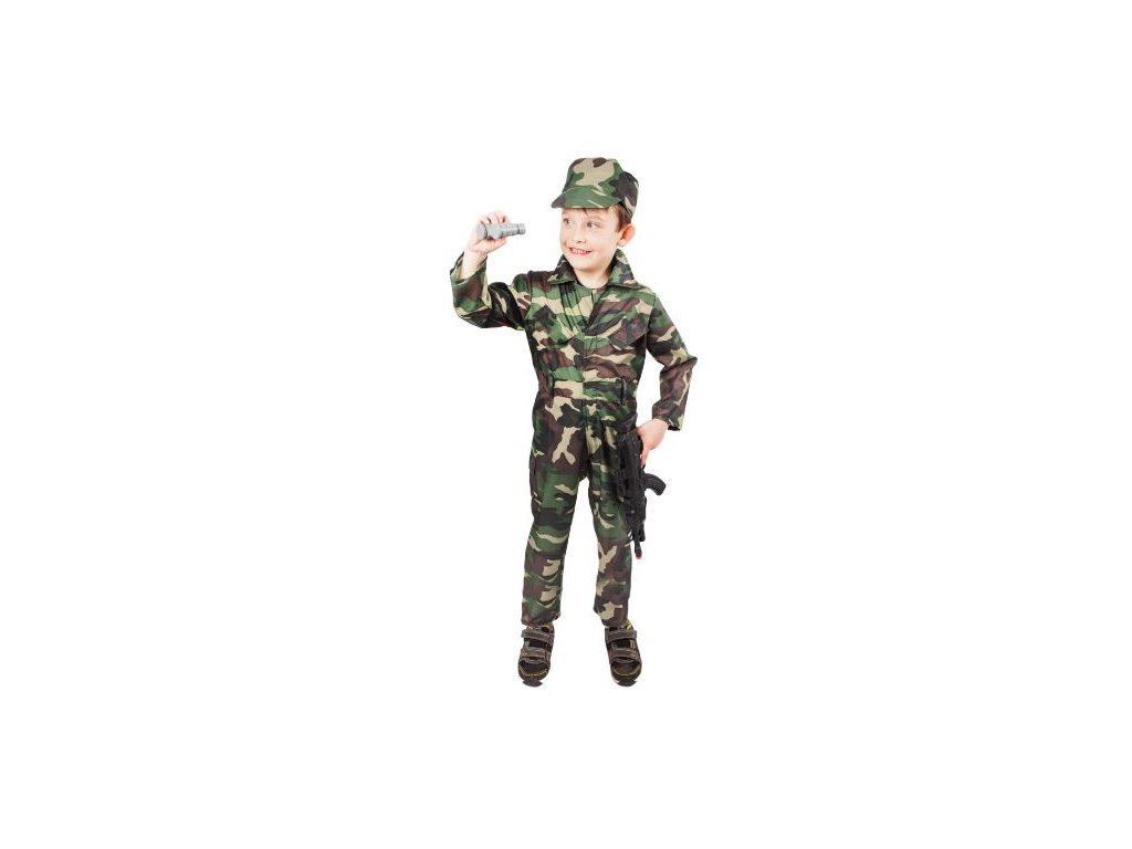 Karnevalový set pro opravdové vojáky! Tato sada obsahuje maskovací kombinézu a čepici. Senzace! Kostýmek vel. S je určen pro chlapečky ve věkovém rozmezí 4-6 let. Staň se hvězdou karnevalových večírků díky tomuto kostýmu.