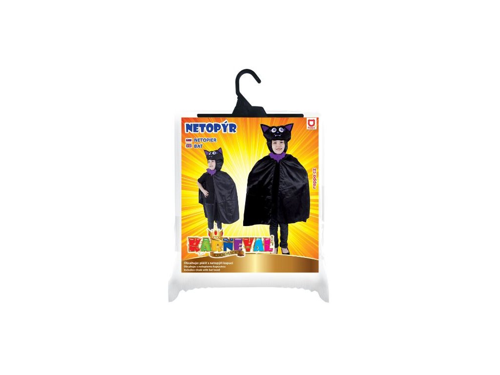 Roztomilý karnevalový kostým s motivem netopýra v černo-fialové barvě a v univerzální velikosti je určen pro děti ve věkovém rozmezí 3-10 let (104-150 cm). Balení obsahuje plášť s kapucí.