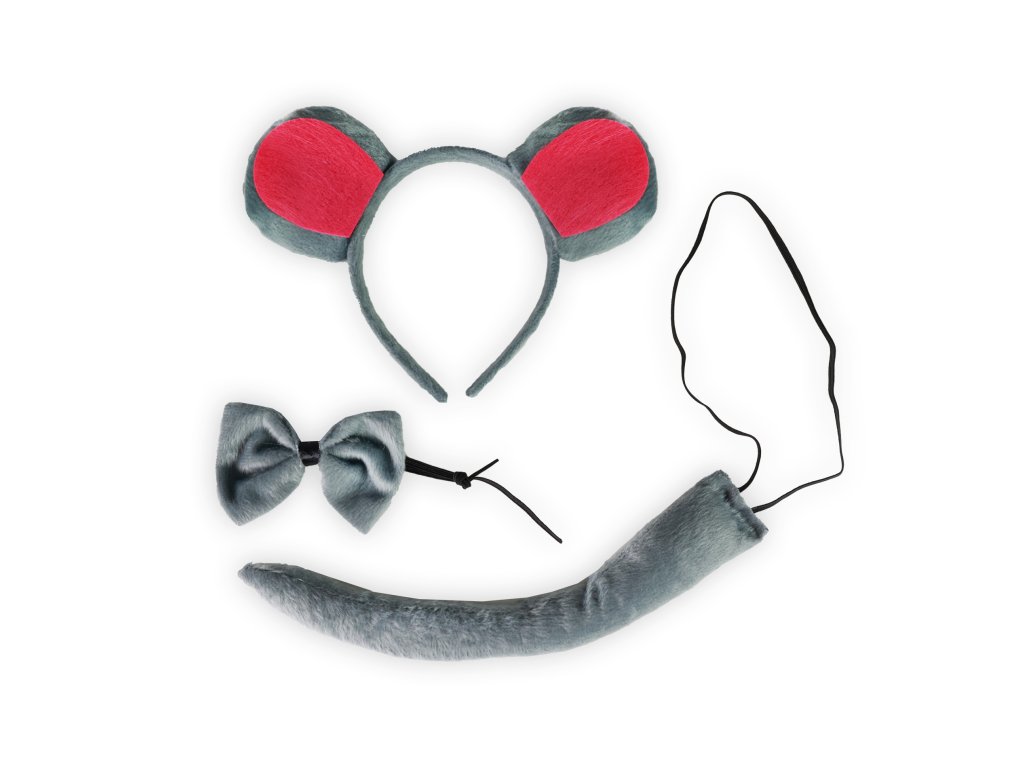 Karnevalové plyšové doplňky v myším stylu! Exkluzivní sada obsahuje ocas na gumičku, motýlka a čelenku s ušima.