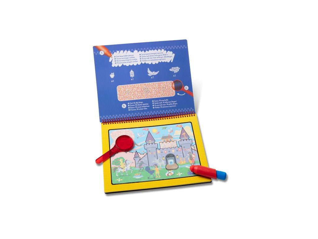 Odhalte skryté obrázky pomocí vodního pera a pak pomocí červené čočky prozkoumejte ještě více v detailních scénách! Mohutné vodní pero a červený objektiv děti snadno drží a úhledně skladují přímo v předním krytu, díky čemuž je kouzlení vodou ideální na cesty.