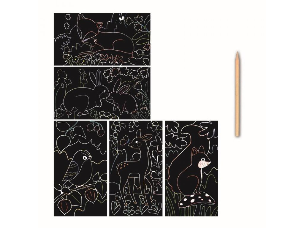 Škrabací obrázky s motivy lesních zvířátek.