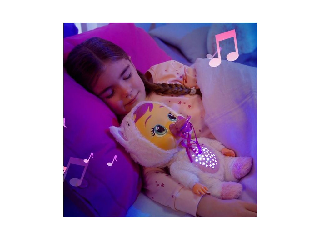 Daisy na Dobrou noc pláče LED světelné slzy. Břicho panenky je projektor k promítání hvězdné oblohy. Vydává autentické zvuky plačícího dítěte. Po vložení dudlíku se uklidní a přestane brečet. Hračka z měkkého plyše. Jedinými plastovými prvky jsou ruce a hlava. Vhodné pro děti od 18 měsíců. Provoz na 3x AAA baterie.