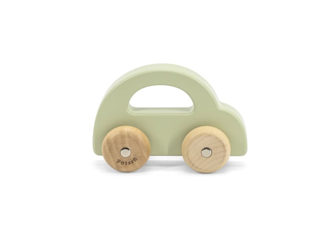 Dřevěné autíčko s pohybujícími se koly pro nejmenší děti. Rozměry 14x5,2x9,5 cm. Rozměry balení cca 17x15,5x6 cm. Věk 6m+