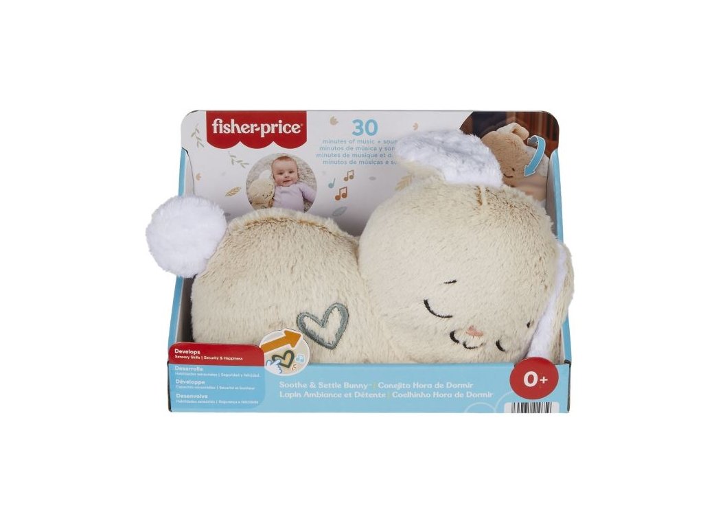 Plyšový přenosný králíček se zklidňující hudbou od Fisher-Price® je měkká a příjemná dětská senzorická hračka, která pomocí pohybu a zvuku pomáhá uklidnit a utěšit vaše děťátko. Když králíček začne zívat a usínat, jeho hlava se rytmicky kýve dopředu a dozadu, což pomáhá uklidnit i vaše děťátko. Tento plně přizpůsobitelný stolní usínáček má 5 různých možností uklidňujícího zvuku a měkké svítící světlo, takže jak vaše děťátko roste, můžete upravit nastavení tak, aby odráželo jeho neustále se měnící potřeby. Věk 0+