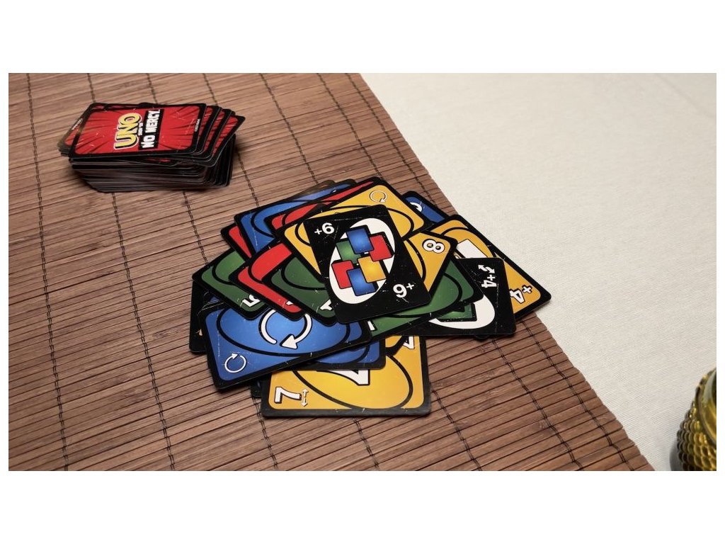 UNO Extension je naše dosud nejbrutálnější hra UNO! Obsahuje spoustu dalších karet s mnohem tvrdšími postihy (kdo si chce vzít 10 karet?) a nová pravidla, díky kterým budou hráči střádat, vyměňovat a tahat více karet než kdykoli předtím! A dokonce je tu i pravidlo milosrdenství (ano, chápeme tu ironii), pokud se věci stanou příliš drsnými. V této nemilosrdné verzi klasické hry můžete vyhrát dvěma způsoby: zbavit se všech karet NEBO vyřadit všechny ostatní hráče ze hry! A pokud se vám podaří dosáhnout chvíle, kdy budete mít v ruce jen jednu kartu, nezapomeňte zakřičet "UNO!".