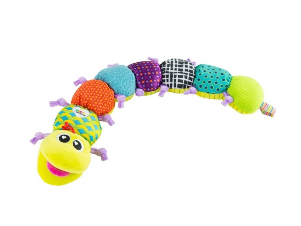 Hudební housenka vyrobená z jemného sametu hraje po zmáčknutí hlavy příjemnou melodii. Metr na spodní straně housenky umožňuje měřit délku dítěte do 60cm. Dítě může objevovat rolničky a šustítka ukrytá v jednotlivých článcích housenky. Pestrobarevné vzory napomáhají rozvíjet zraku. Věk 0+