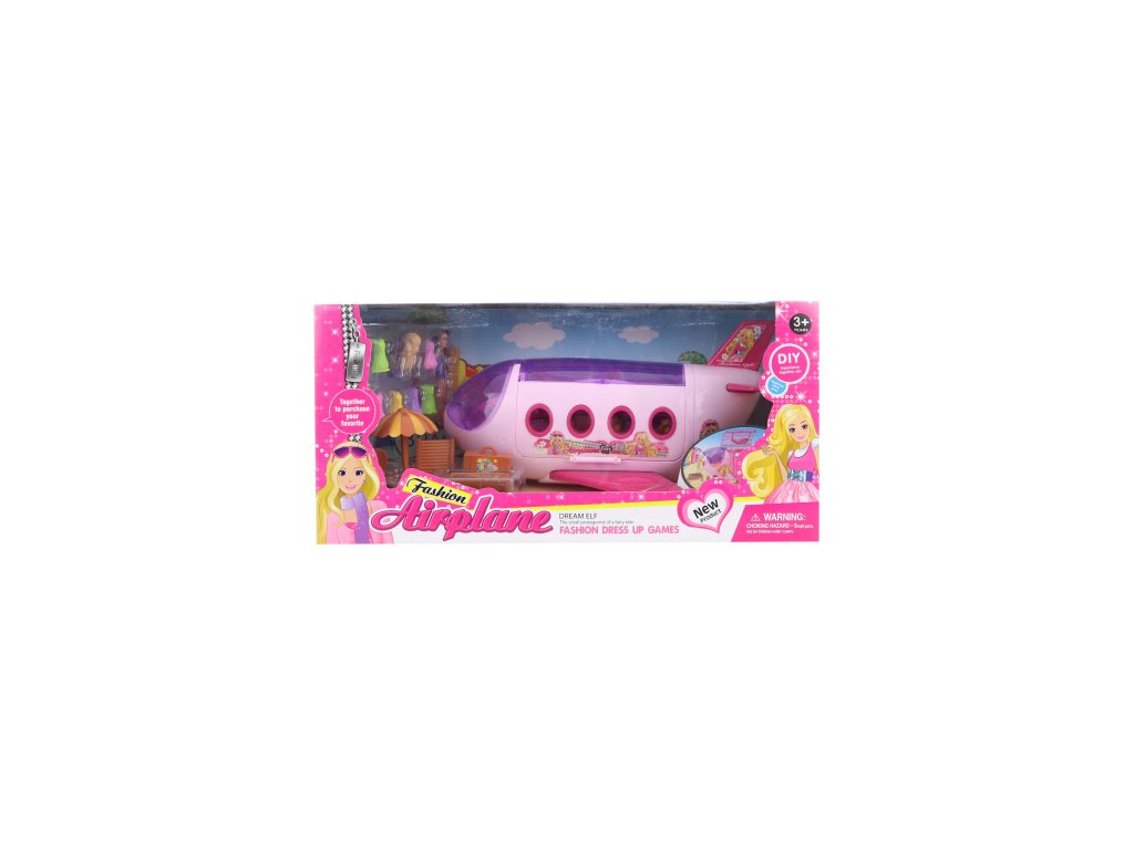 Plastové letadlo pro panenky s doplňky. Balení obsahuje: letadlo, nábytek, kufr, 2 panenky, 6 druhů oblečení a další doplňky. Rozměr letadla cca 36 x 20 x 18 cm. Rozměr balení cca 44,5 x 21 x 22 cm. Věk 3+