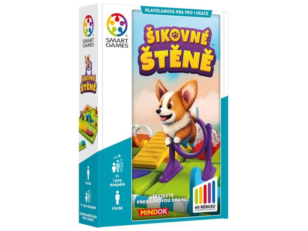 Sestavte překážkovou dráhu a vyhrajte! Naučte svého šikovného pejska novým kouskům! Sestavte mu překážkovou dráhu, aby ukázal svou šikovnost. Nezapomeňte na žádnou z překážek! Kompaktní hra v praktickém balení na cesty pro milovníky psů (a skládaček), malé i velké. Obsahuje 60 úloh. Vyčenicháte všechna řešení správně? Určeno pro 1 hráček. Věk 7+