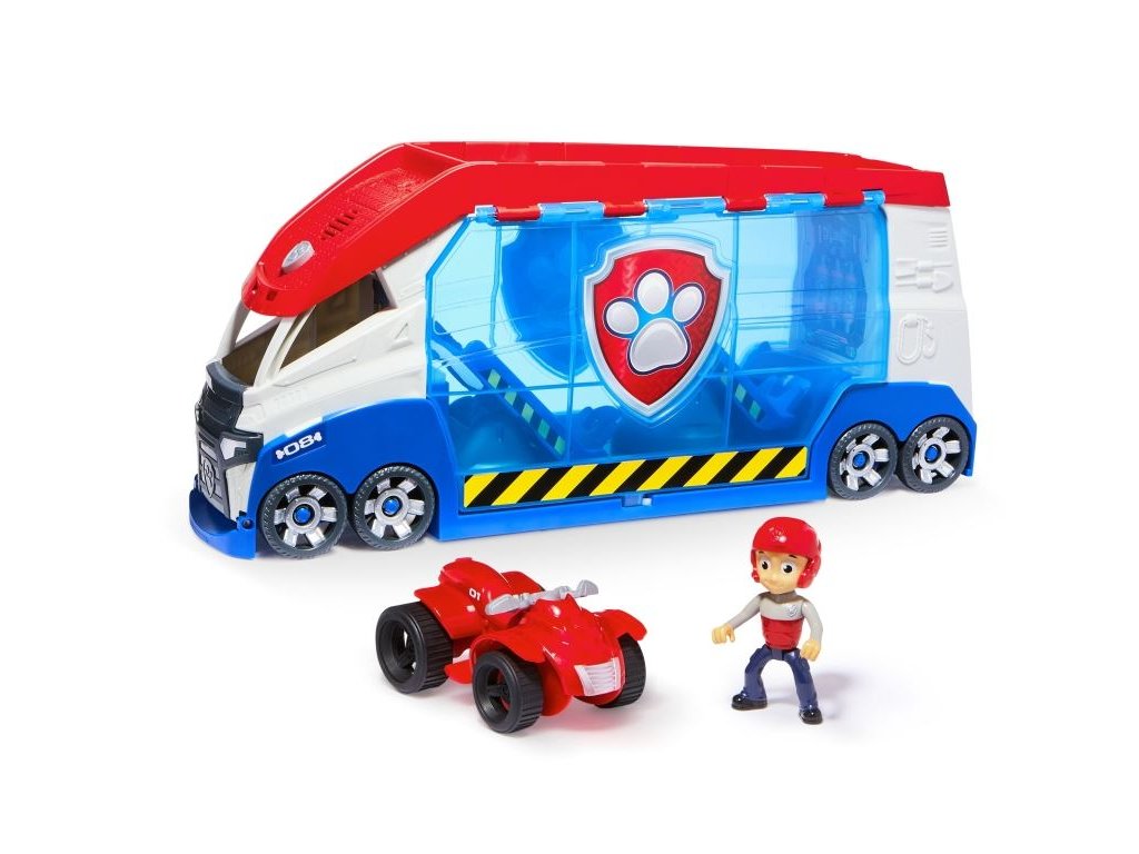 Vydejte se na napínavé záchranné mise s akčním vozidlem týmu Tlapkové patroly. Sada obsahuje Rydera a jeho čtyřkolku s transformujícími se dveřmi, dvojitý odpalovač autíček – vše doplněno o napínavé zvukové efekty pro strhující zážitek! Když se objeví potíže, připravte se vyrazit na pomoc. S prostorem pro 6 figurek a autíček je Hlídkovací vozidlo Tlapkové patroly připraveno vyrazit na jakoukoliv misi. Uložte Rydera do odpalovacího zařízení, zvedněte dveře zatažením za páku vzadu a aktivujte odpalovací zařízení. Stisknutím tlačítka na střeše aktivujete zvukové efekty ze seriálu pro ještě lepší zážitek z dobrodružství! Pořiďte svému malému fanouškovi Tlapkové patroly toto parádní záchranářské vozidlo a zajistěte mu hodiny nápadité hry. Hračky s tematikou Tlapkové patroly pro chlapce a dívky podporují nápaditou hru a zlepšují jemnou motoriku, proto jsou skvělými dárky pro všechny fanoušky pořadu. Hrdinové z Tlapkové patroly a jejich autíčka vám umožní znovu prožít vaše oblíbené okamžiky z různých dobrodružství Tlapkové patroly, jako jsou Mocná štěňata a Tlapková patrola ve filmu, nebo se vydat na zcela nová dobrodružství (prodávají se zvlášť). Užijte si dlouhé hodiny zábavy a vydejte se na dobrodružství inspirované seriálem Tlapková patrola s celým týmem záchranářů, který obsahuje autíčka Tlapkové patroly, akční figurky a zcela nové velitelství v podobě Tlapkové věže.