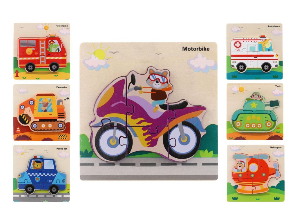 Zábavné učení hrou! Tato dřevěná vkládačka s motivem dopravních prostředků pomáhá dětem rozvíjet jemnou motoriku, logické myšlení i znalost různých vozidel. Každý dílek má své místo – stačí najít správný tvar a zasunout. Vhodné pro děti od 3 let