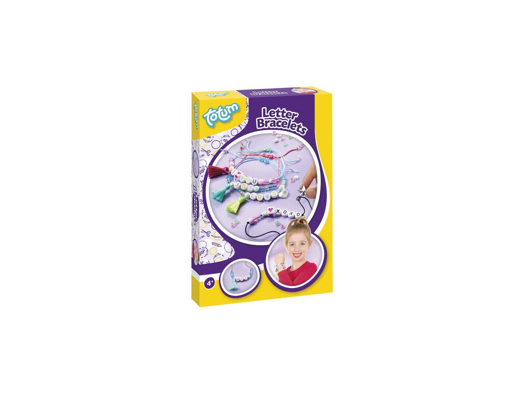Balení obsahuje: skleněné korálky a korálky s vybranými písmeny, 3 barevné střapce, 4 vázací šňůrky, 2 přívěšky ( srdce a hvězda ), návod k použití.
