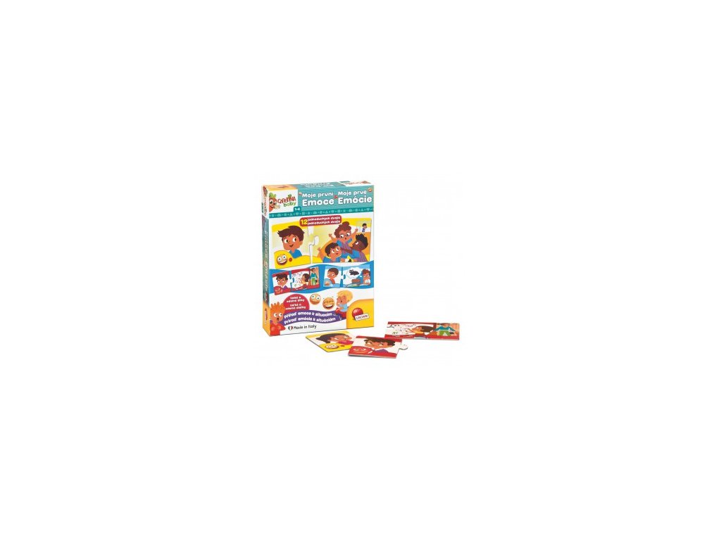 Jednoduchá hra plná asociací pro malé děti. S pomocí obrázkových puzzle děti lépe porozumí emocím a přiřadí si je k situacím v běžném životě. Hra je vyrobena z materiálu, který je bezpečný pro nejmenší děti.
