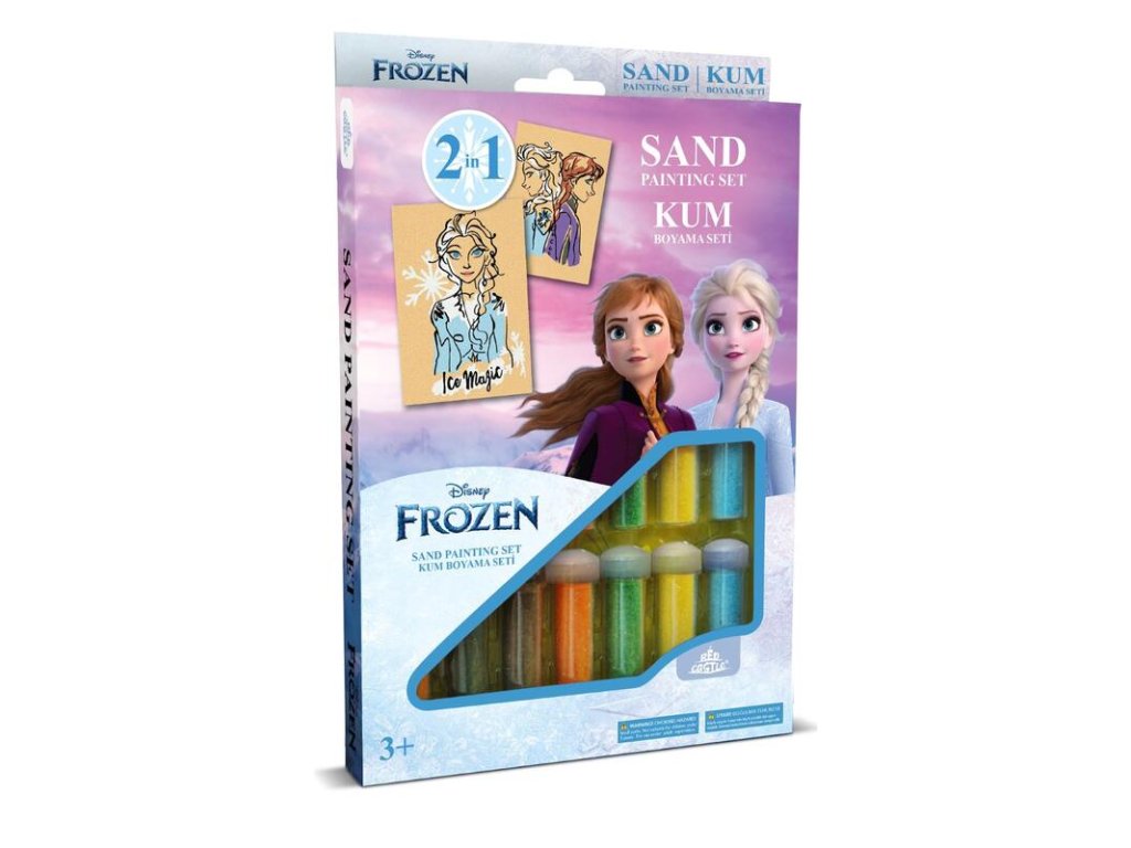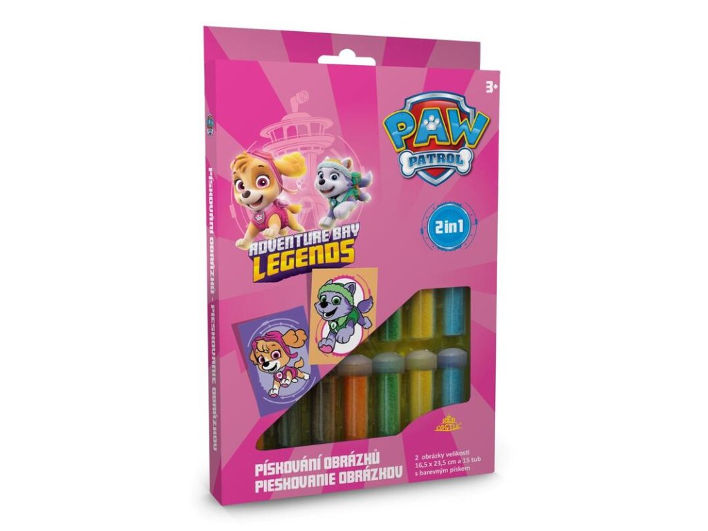 Balení obsahuje: 2 obrázky k vypískování, speciální pinzetu, 15 tub s barevným pískem a 2 obaly na vytvořené obrázky.