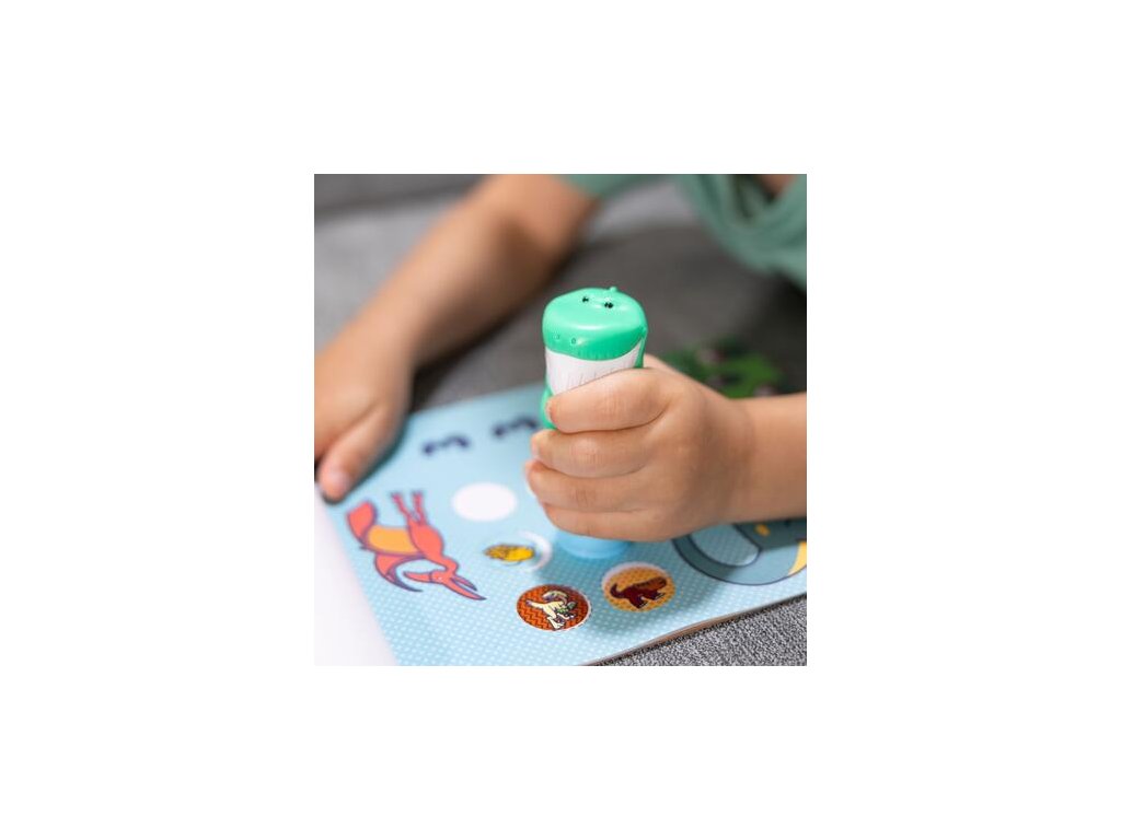 Razítkovač se samolepkami Sticker WOW!™ od Melissa & Doug je zcela nový způsob, jak si hrát se samolepkami! Nechte rozkošného sběratelského dinosaura Olivu razítkovat a razítkovat, razit si cestu přes 24 stránek plných zábavy s prehistorickou tématikou počítání, přiřazování a hledání.