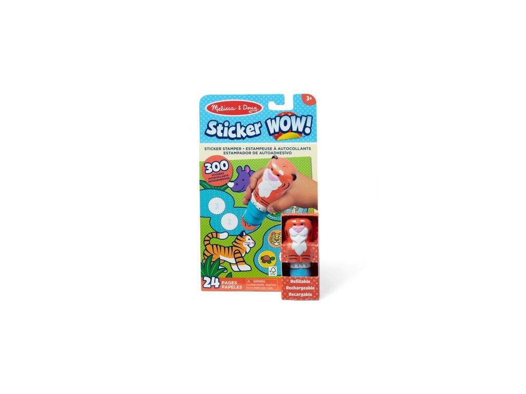 Razítkovač se samolepkami Sticker WOW!™ od Melissa & Doug je zcela nový způsob, jak si hrát se samolepkami! Nechte rozkošného sběratelského tygra razítkovat a razítkovat, razit si cestu přes 24 stránek plných zábavy se safari tématikou počítání, přiřazování a hledání.