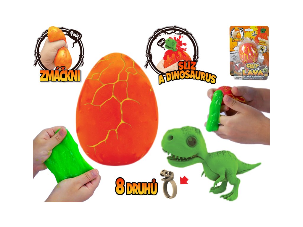 Crazy Dino vejce 8cm se slizem. dinosaurem a prstýnkem