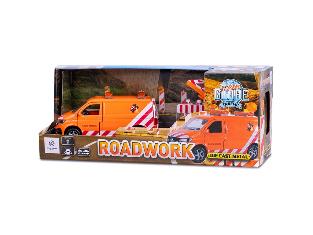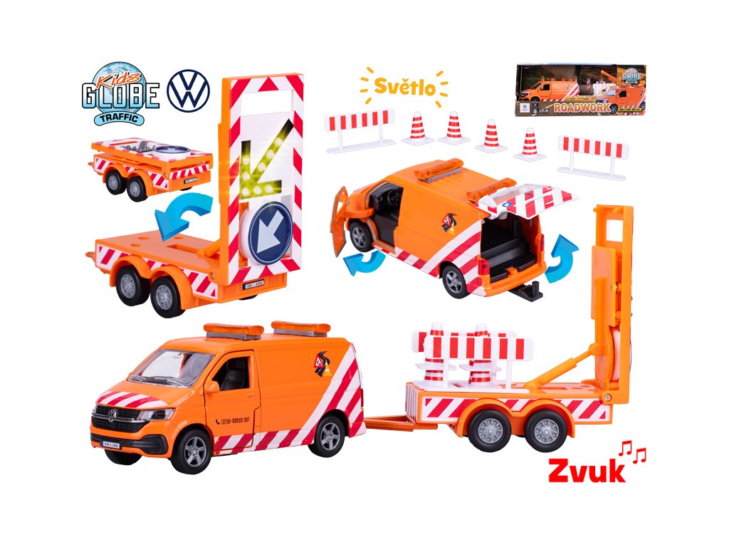 Kids Globe Traffic VW Transporter 27cm kov zpětný chod s se světlem a zvukem v krabičce