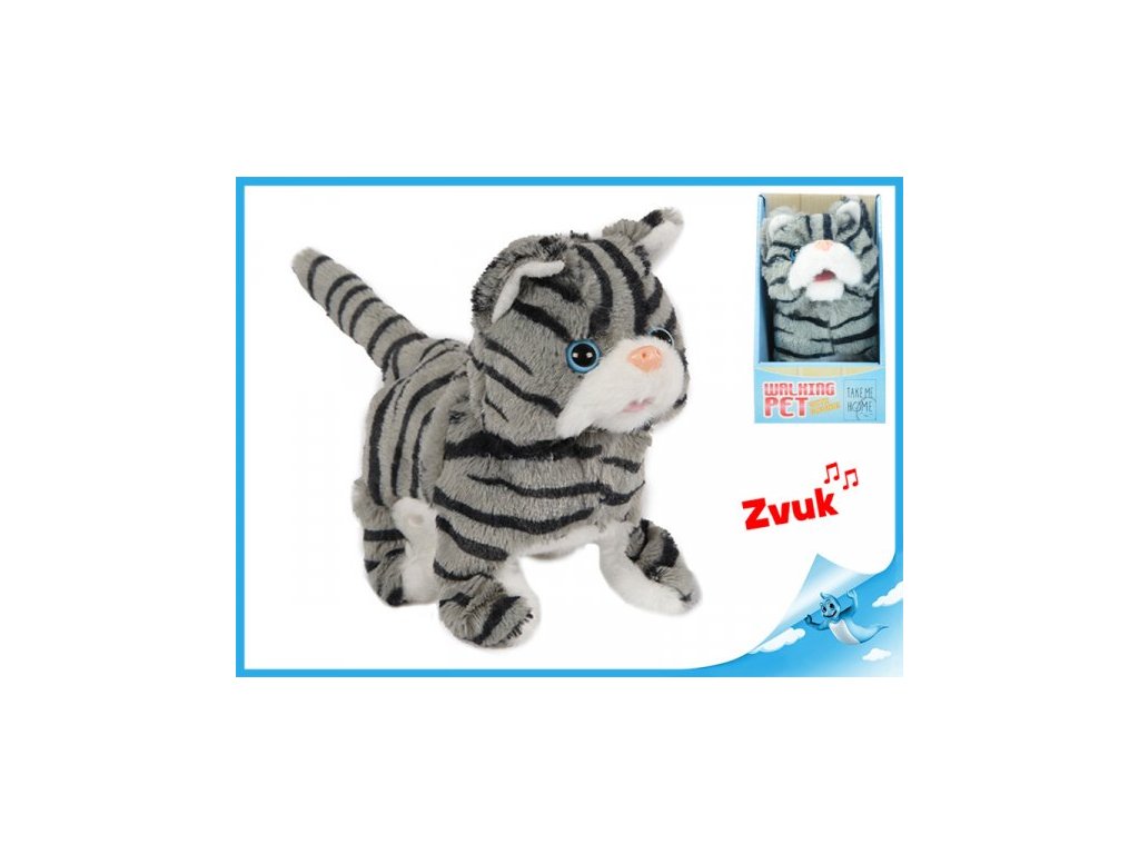 Kočka plyšová 15,5cm chodící a běžící na baterie se zvukem