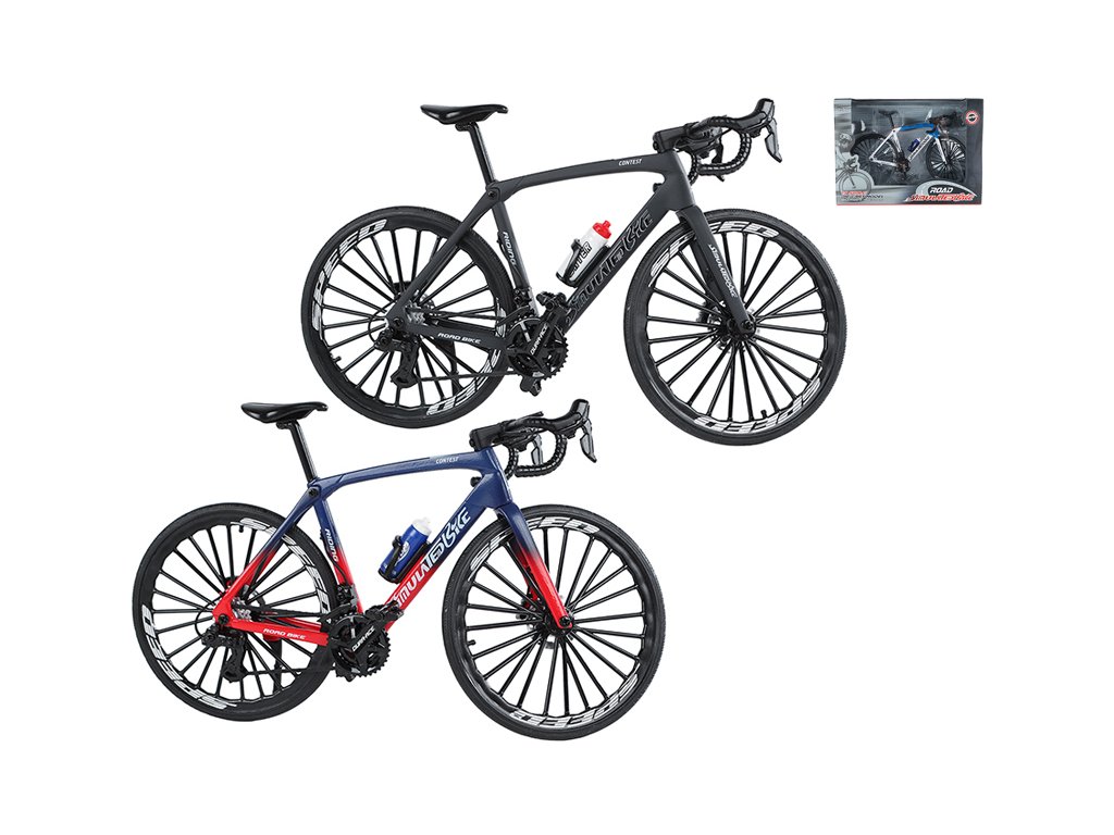 Sestavený kovový model závodního kola. Vybírat můžete ze tří barevných variant.