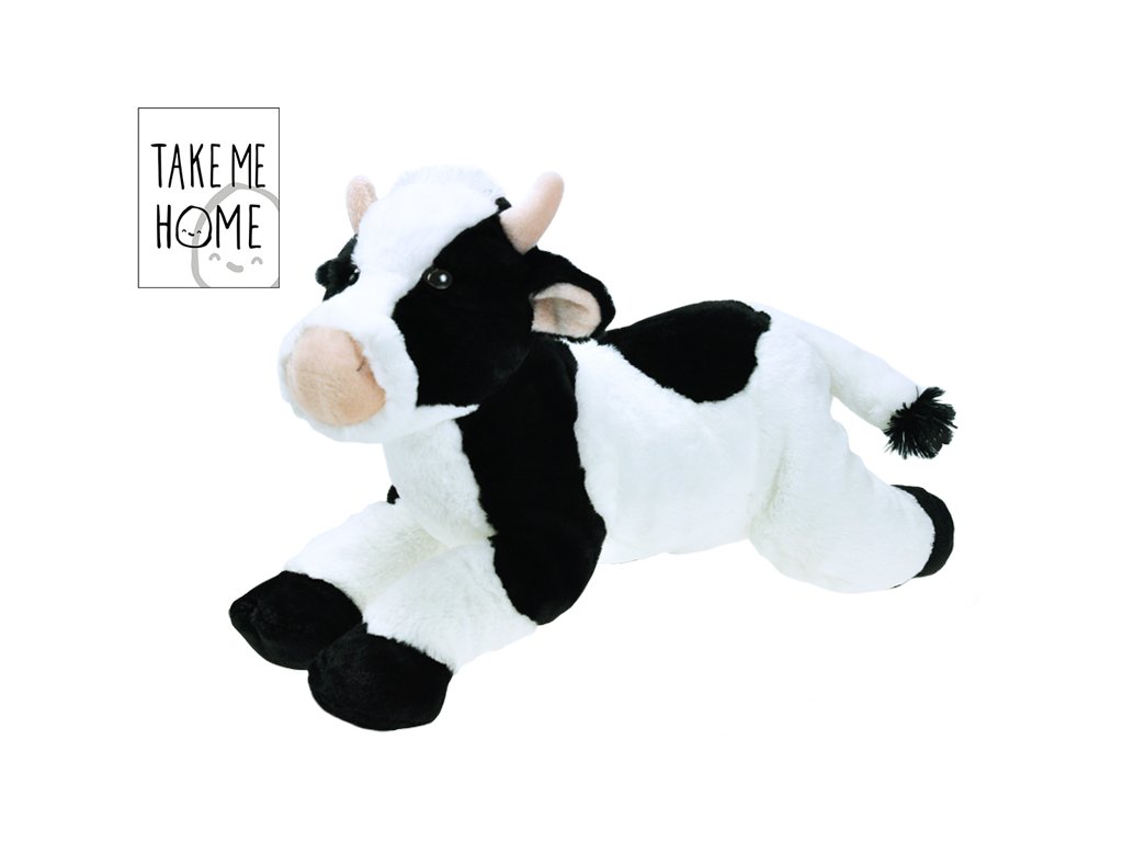 Ležící černo-bílá plyšová kráva v licenci Take Me Home.