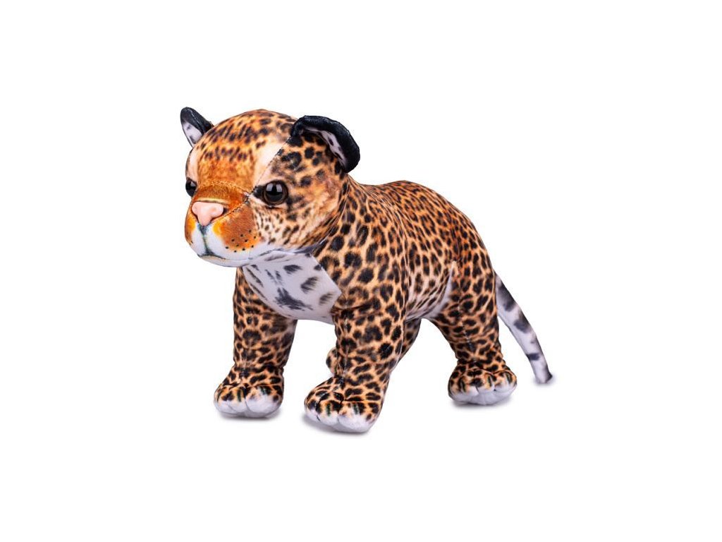 Stojící plyšová postava Levharta skvrnitého pro malé i velké milovníky zvířat.