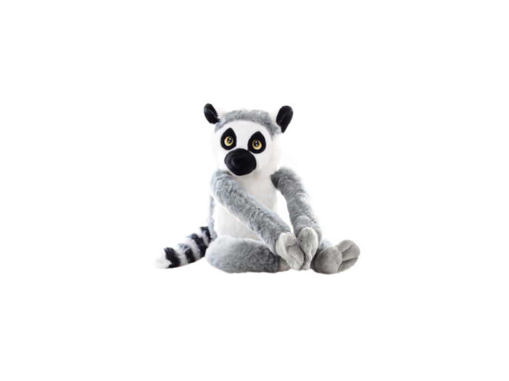 Plyšový lemur o rozměru cca 11 x 38 x 13 cm. Horní končetiny jdou spojit pomocí suchého zipu. Věk 0+