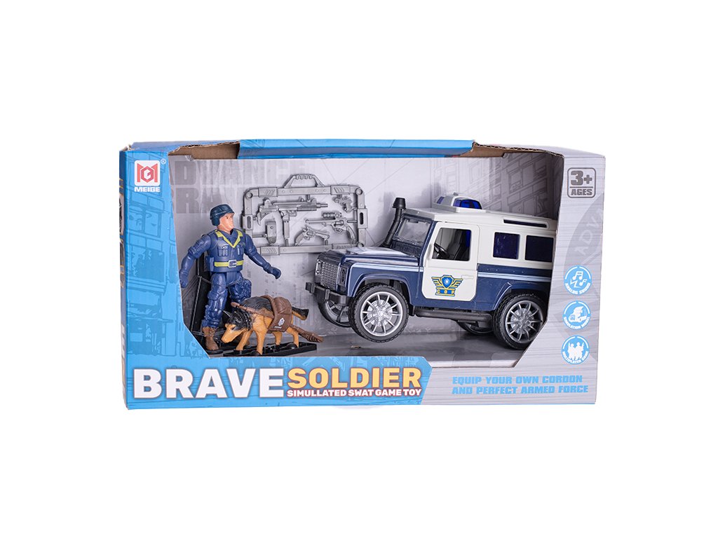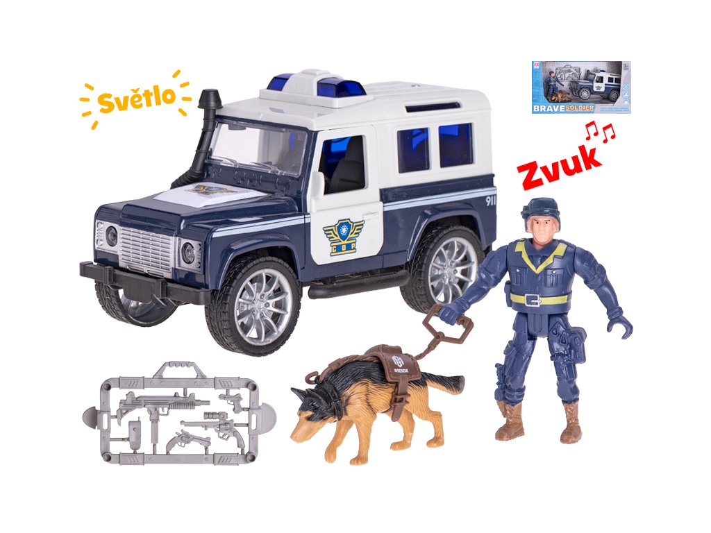 Policie dodávka 17cm na setrvačník na baterie se světlem a zvukem s doplňky v krabičce