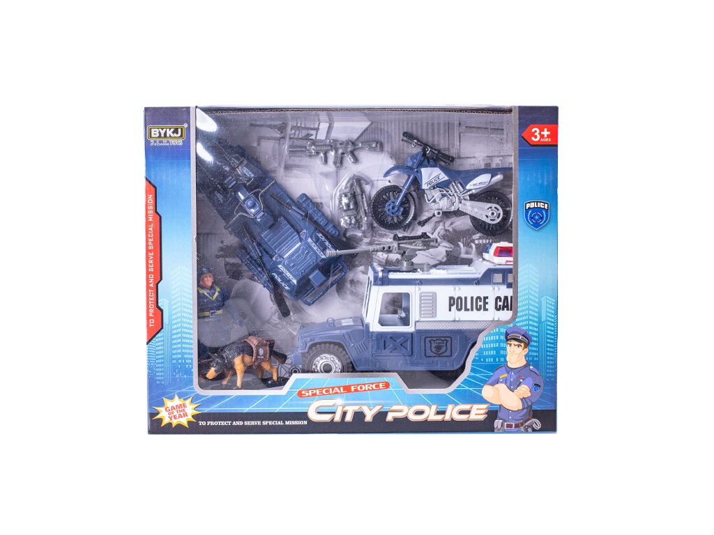 Policie vozidla volný chod 3ks s doplňky v krabičce