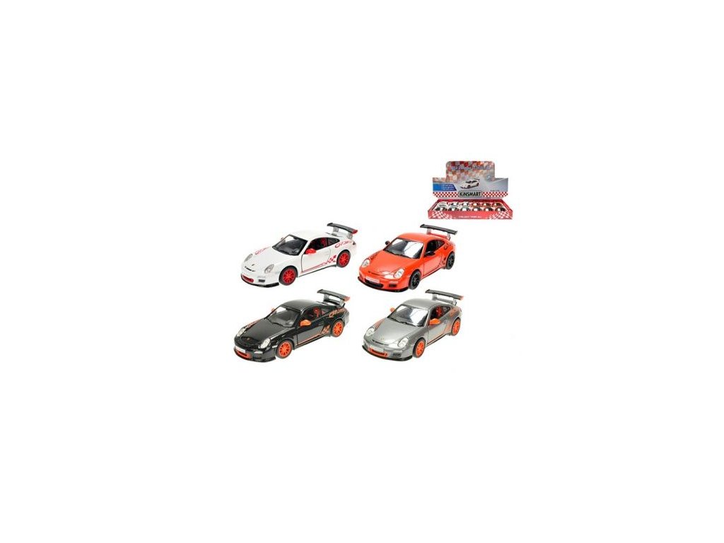 Kovové sportovní auto Porsche 911 GT3 v měřítku 1:36, jezdí na zpětných chod. K dostání ve čtyřech barvách.