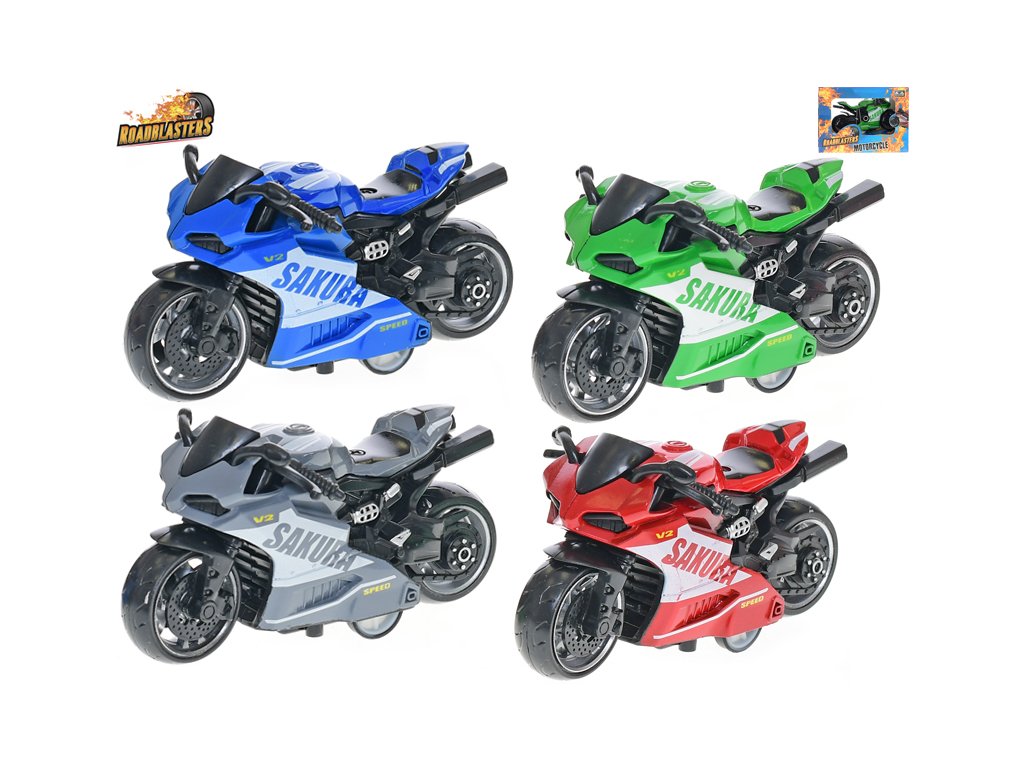 Tato motorka je skvělá hračka pro malé závodníky. Je to model roadblaster, který je rychlý a silný. Motorka je vyrobena z kovu a plastu, které jsou odolné a lehké. Motorka má zpětný chod, což znamená, že když ji natáhnete dozadu, uvolní se a vyjede vpřed. Motorka má také detailní design, který vypadá jako opravdová motorka.