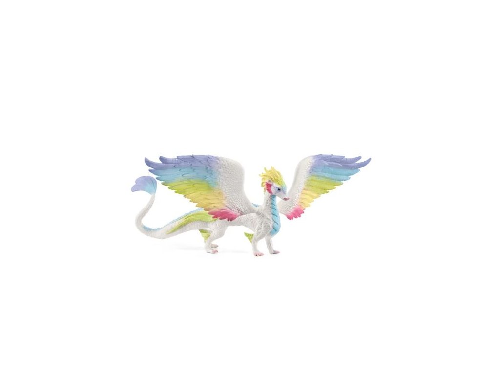 Spatříte ho ještě vzácněji než kometu či čtyřlístek. Když se vám ale duhový drak ze světa Schleich® bayala® zjeví, zaručeně vám spadne čelist. Jeho pestré peří odráží sluneční paprsky a naplňuje horizont všemi barvami. Většinou se to stává, když okřídlený drak doplňuje jeskynní zásoby. A musí se proletět místností. Rozměr: 25 x 30,2 x 13,3 cm. Věk: 3+
