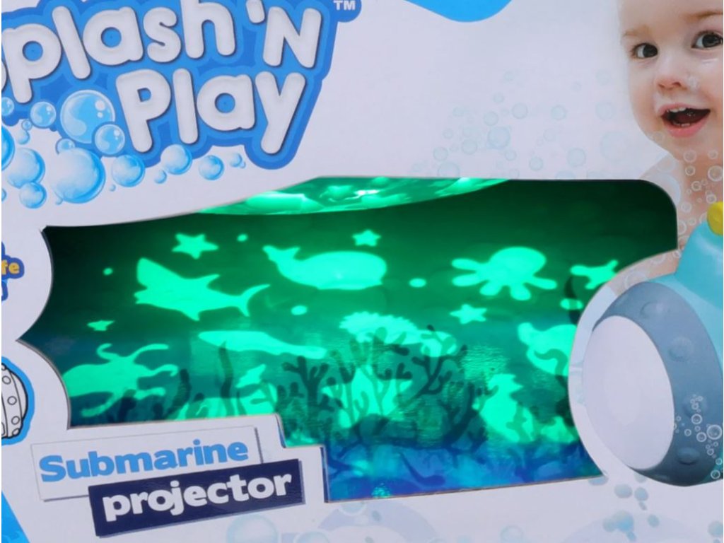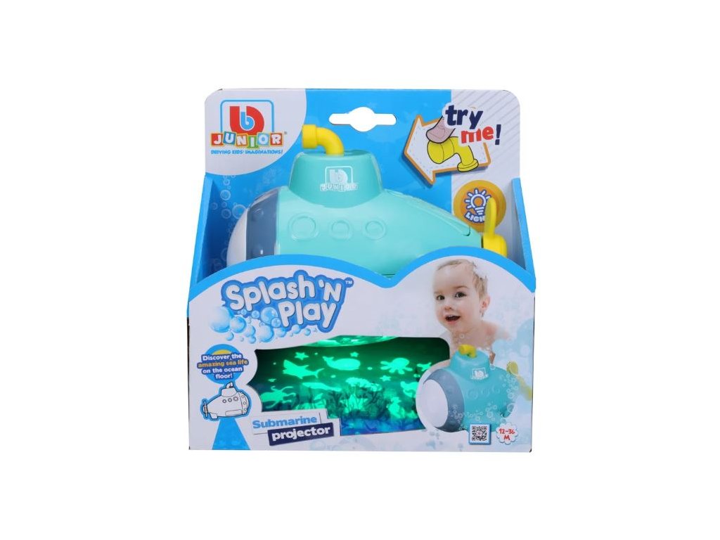 Ponorka s projektorem Splash'N Play od BB Junior zaručuje malým dětem spoustu zábavy při koupání. Ponorka s projektorem při stlačení periskopu zobrazuje jedinečné mořské motivy na dně vany či bazénu a vytváří tak podmořské dobrodružství pro děti. Barvy projekce se mění a posouvají s pohybem vody. Děti mohou projektorem pohybovat a vytvářet různé vzory a obrázky, což přispívá k interaktivnímu a poutavému zážitku. Ponorka je vhodná pro děti od 12 měsíců. Funguje na 3 baterie AG13/LR44, které jsou součástí. Velikost člunu je 5,5” (14 cm). Rozměr balení: 16 x 16,55 x 12,1cm.