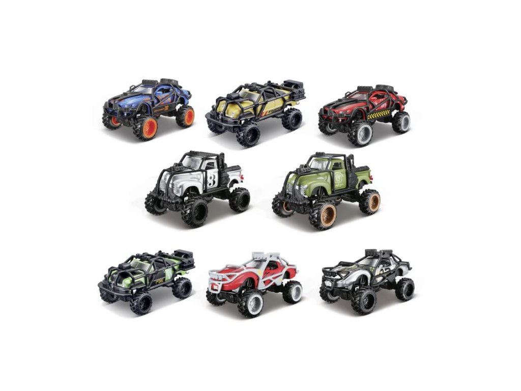 Desert Rebels. Kovové modely aut v provedení off-road, odnimatelný plastový rám, otevíraní dveří. Plastové doplňky. K dispozici 12 variant: Ford Mustang Gt 2015 Blue, Ford Mustang Gt 2015 Red, Dodge Challenger 2006 Green, Dodge Challenger 2006 Yell, 1953 Chevrolet 3100 Green, 1953 Chevrolet 3100 White, Chevrolet Corvette 1978 Red, Chevrolet Corvette 1978 Silver, Jeep Wrangler 2003 Black, Jeep Wrangler 2003 Red, 1949 Ford Green, 19149 Ford Yell. Baleno v krabičce. Assort je náhodný mix modelů. Výběr nelze ovlivnit. Věk: 3+